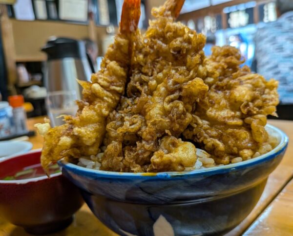 【八ツ手屋】大正3年創業!厚めの衣にしみ込む伝統の甘辛タレ、江戸前天丼いただきました!