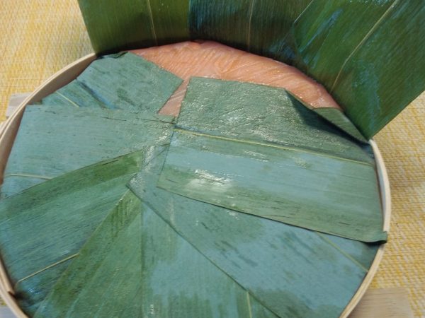 フタを開けずに、そのまま木のわっぱををひっくり返して置きます。