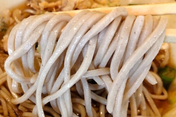 東京の立ち食いそば屋さんの節系、辛めの汁と違って、甘めでコクのある感じ。