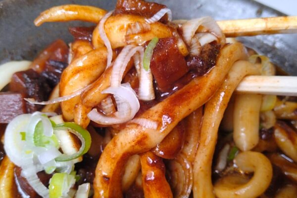 そしてレンゲをおはしに持ち替え、うどんをすすり込む。
