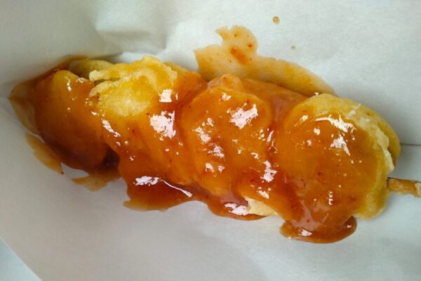 ふかしたジャガイモの天ぷらに甘い味噌タレ、秩父名物『みそポテト』