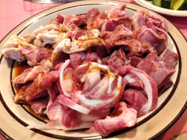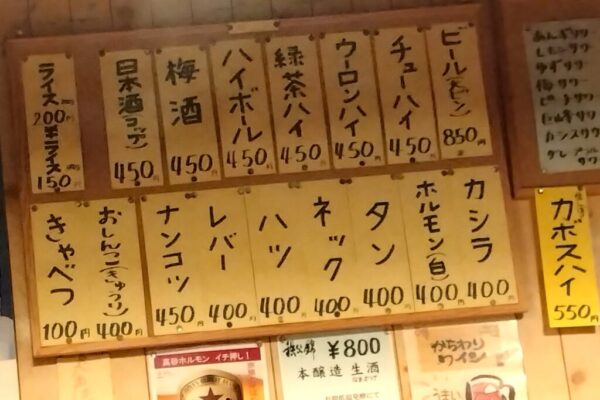 メニュー端から端まで、ホルモン、タン、ネック、ハツ、レバー、ナンコツを「大人買い」で注文!