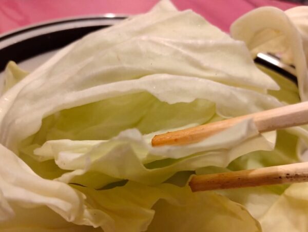 さらに、きゃべつを間にはさめば、ホルモンますますうまし。