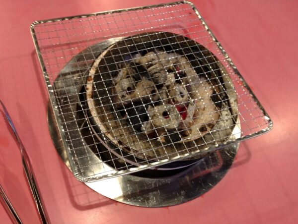 注文を終えると、炭の入ったコンロに火がつけられる。