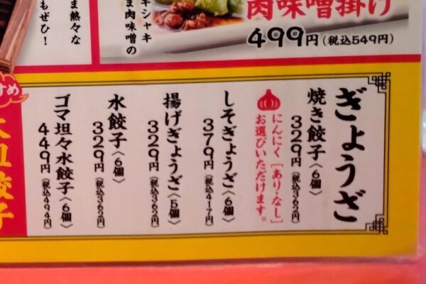 そう、当店の餃子は、にんにく「なし」の選択もできる!