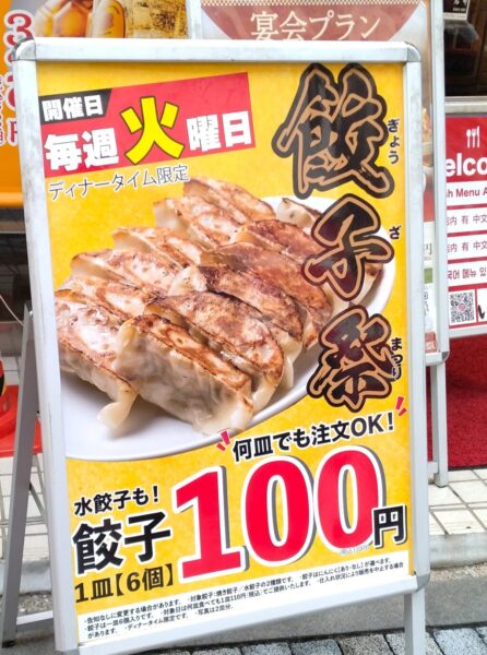 この日は、何皿でもオッケー、餃子一皿を100円で楽しめる!