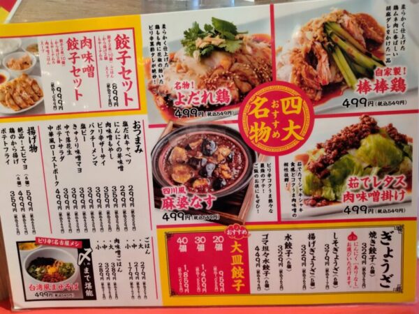 自慢の餃子がメインは不変だが、餃子以外も取り揃えている。